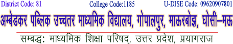 हाईस्कूल (10th): हिंदी, अंग्रेजी, गणित, सा० विज्ञान, विज्ञान, उर्दू, कम्प्यूटर ,कला/संस्कृत